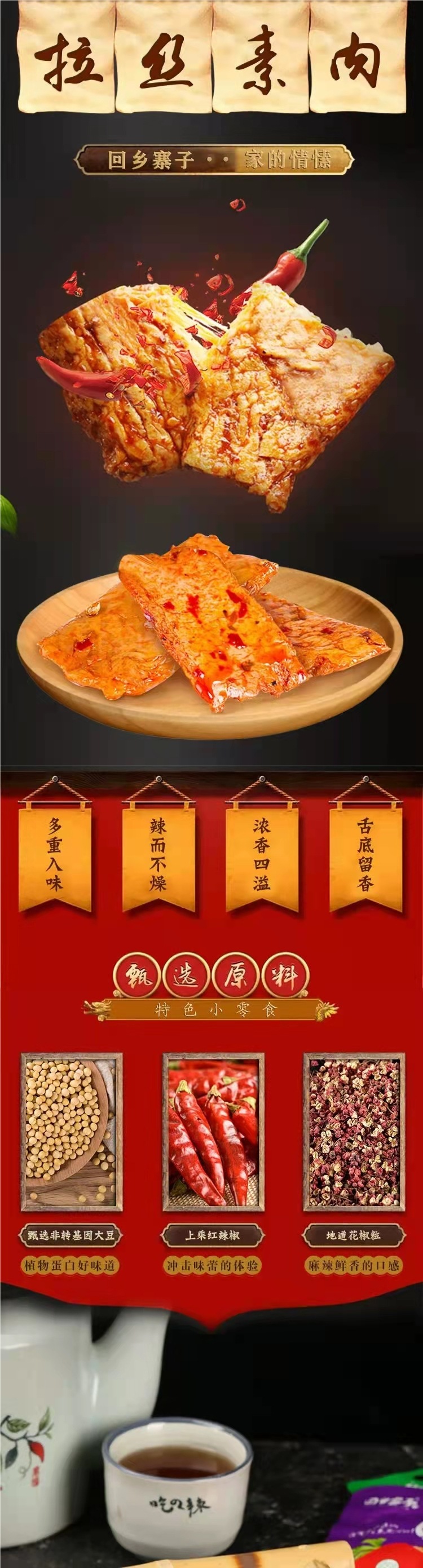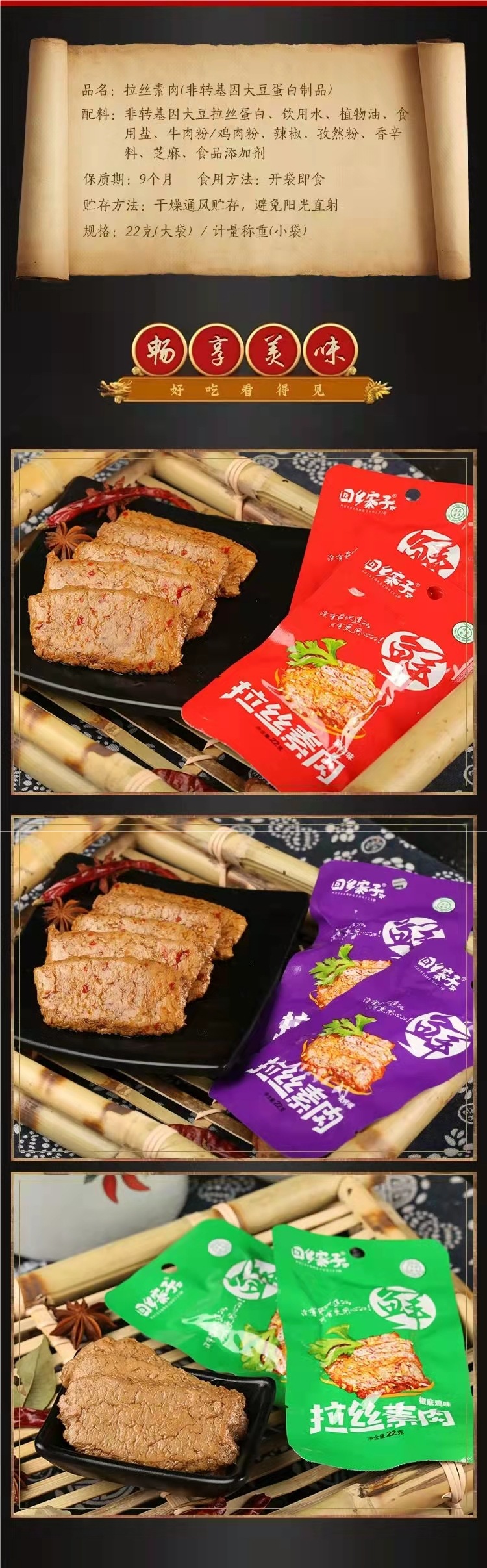 回乡寨子宁夏清真食品拉丝素肉手撕麻辣烧烤五香豆制品盒装包邮
