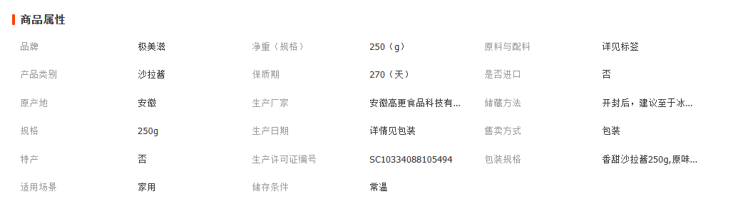 极美滋甜香沙拉酱汉堡三明治色拉酱水果蔬菜家用挤压瓶包装250g