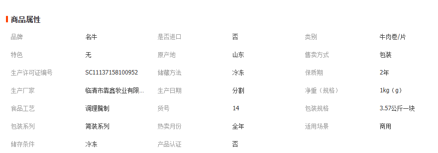 主营: 牛排类 牛肉类