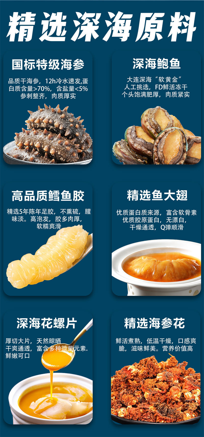 现货批发海参鲍鱼礼盒海参干货鱼大翅鳕鱼胶六拼礼盒即食海参