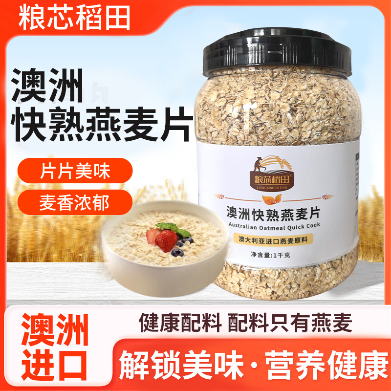 粮芯稻田燕麦片澳洲快熟纯燕麦片1kg/桶装早餐即食冲饮正品保障