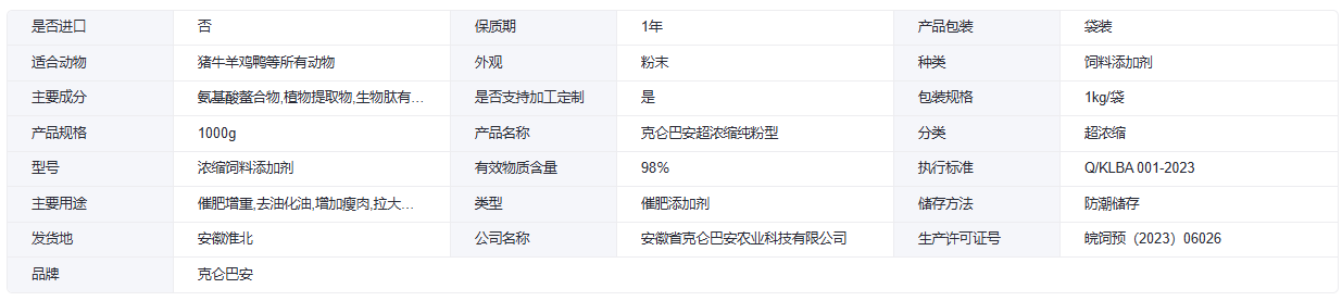 克仑巴安 增重促长 牛羊育肥 饲料添加剂 去油安全催肥小料 1000克/袋