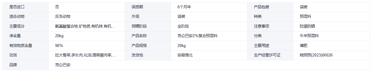 克仑巴安 牛羊预混料 核心配方 厂家发货 牛催肥饲料 40斤一袋