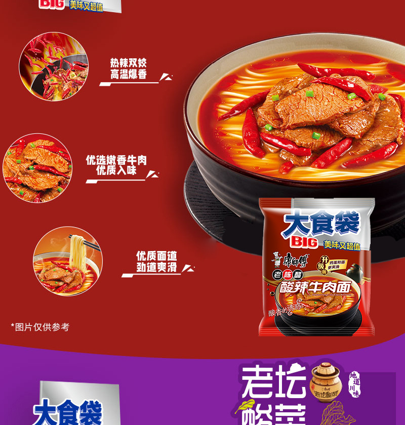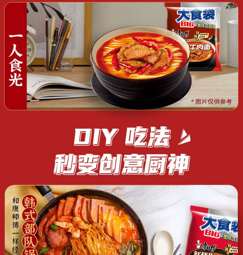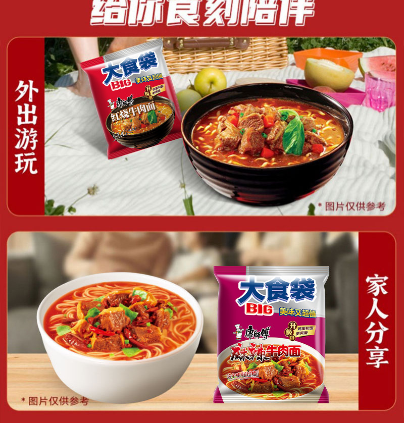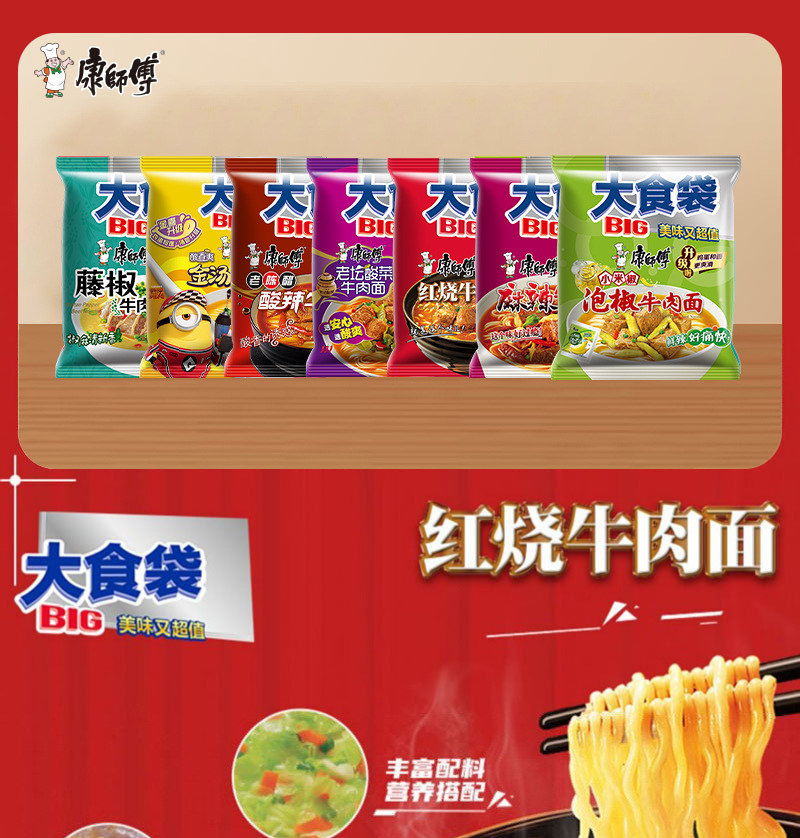 康师傅方便面整箱批发大食袋泡面袋装红烧牛肉速食即食夜宵大面饼