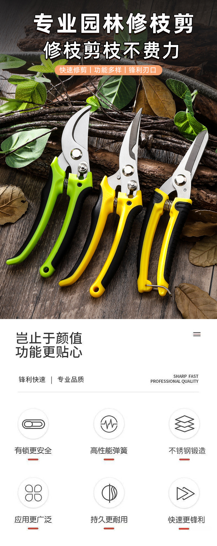厂家直销不锈钢多用途鸟嘴修枝剪刀果园摘果剪刀省力园林修枝剪刀