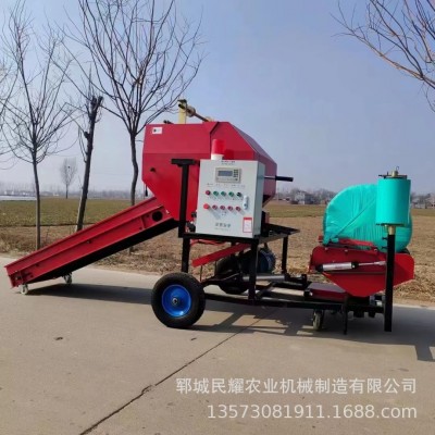 青贮粉碎打捆包膜一体机 全自动青储秸秆打包机 牛羊青草 料圆捆机