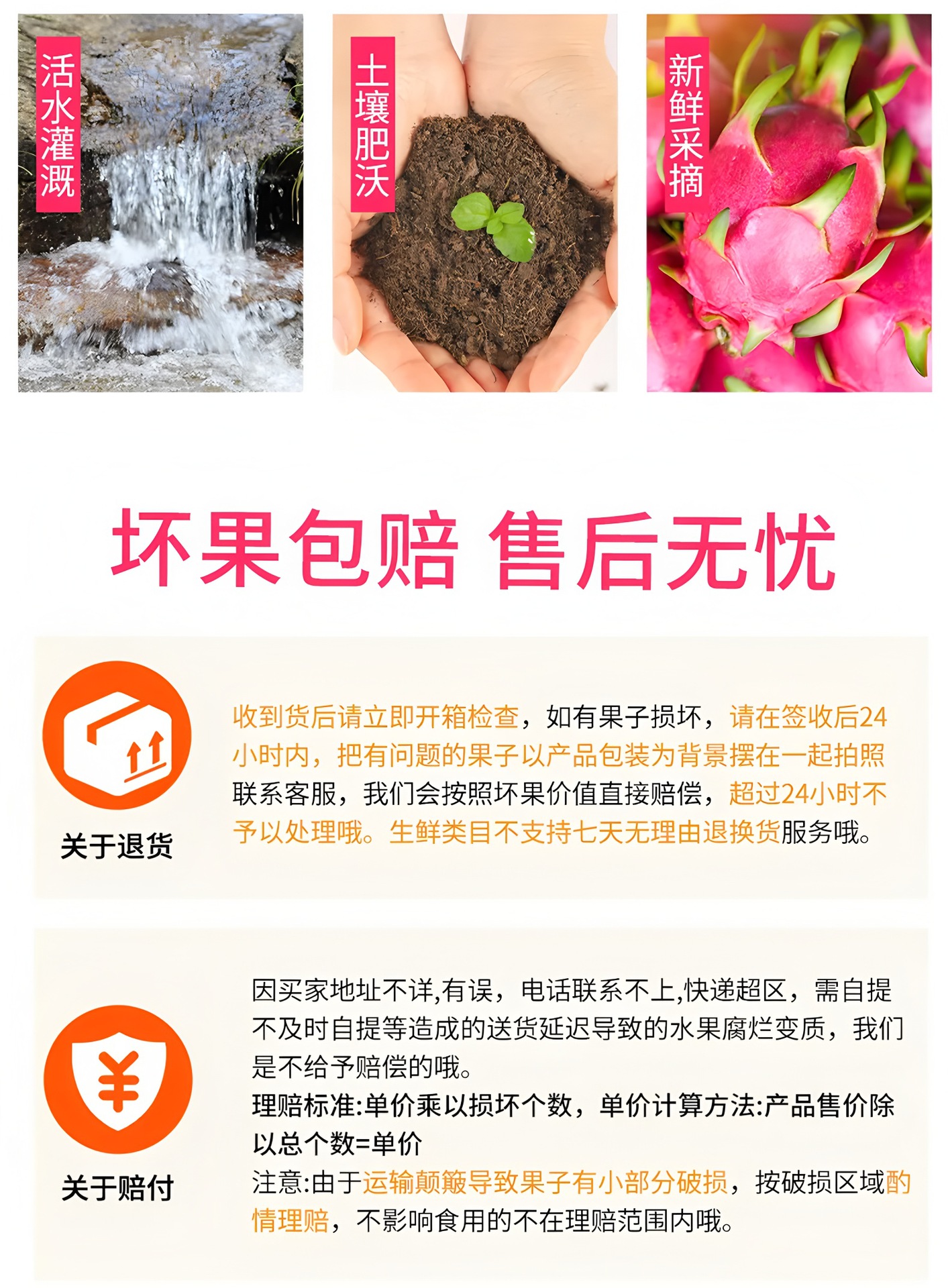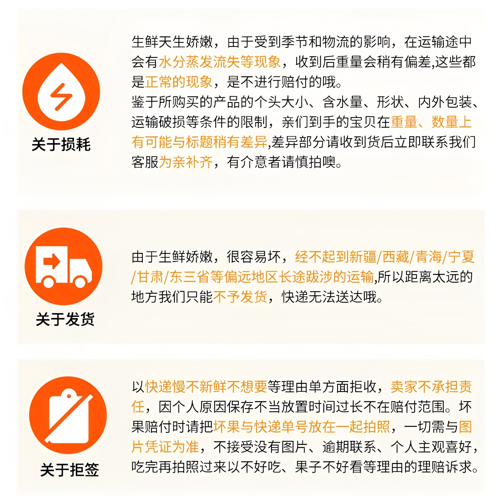 5.生鲜水果因轻微磕碰或者口感/品相问题不影响食用的不予赔付。