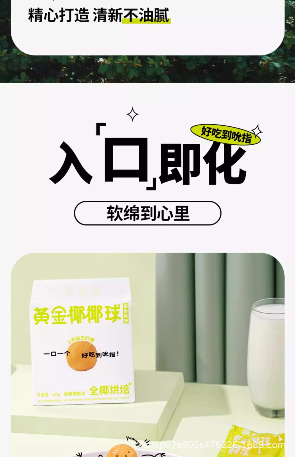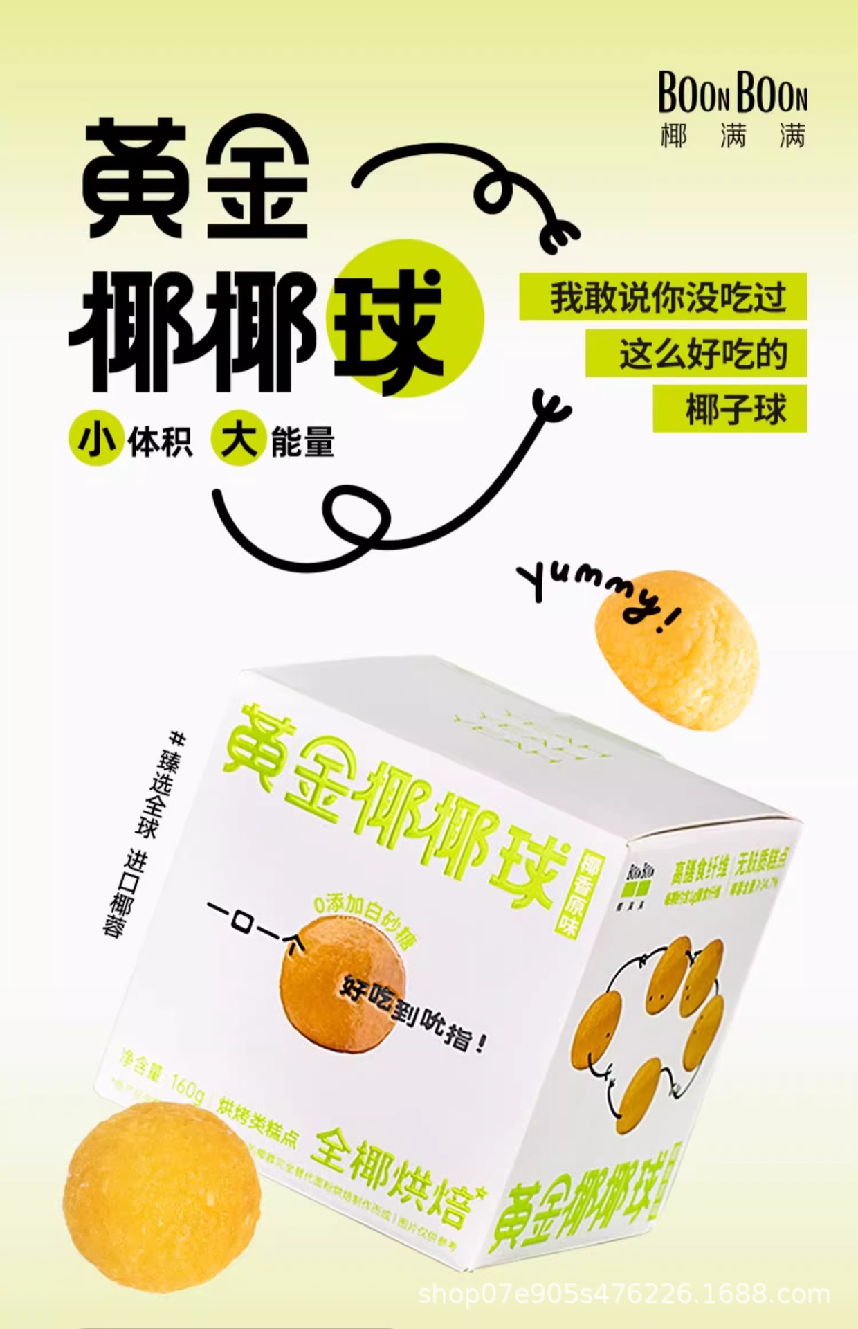 boonboon椰满满椰椰球饼干零食休闲小吃下午茶点心160g/箱批发