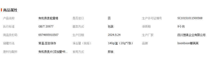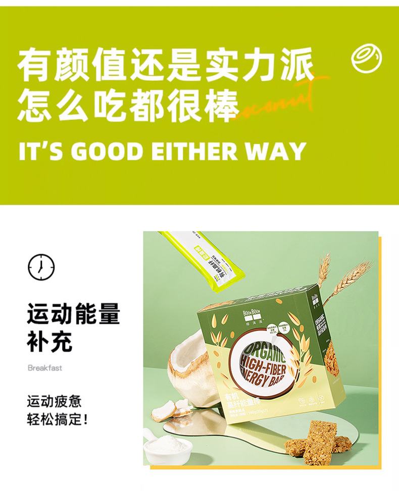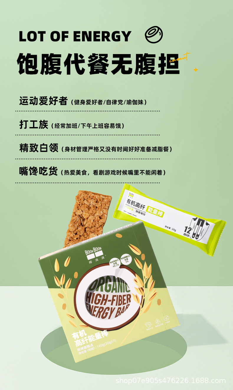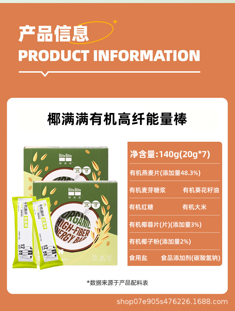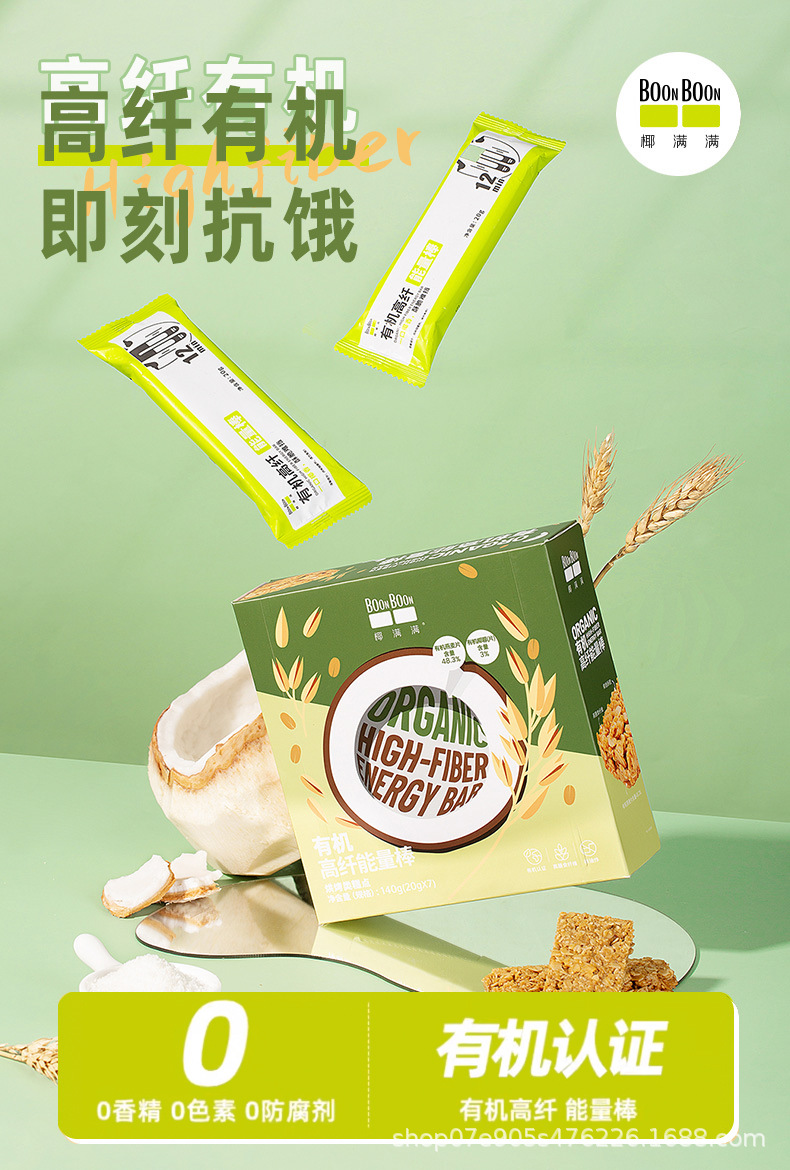 boonboon椰满满有机燕麦能量棒椰子代餐饱腹零食高纤谷物棒批发
