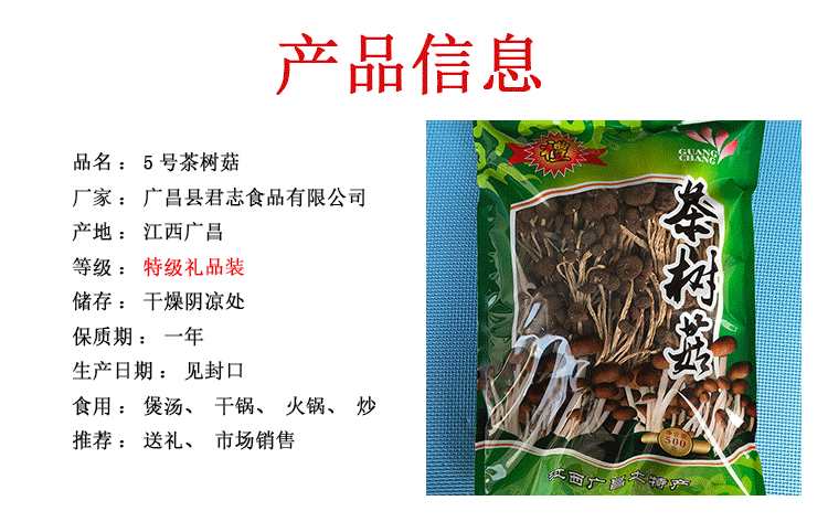 君志 礼品装江西广昌5号茶树菇干货批发 不开伞特级新鲜食用菌
