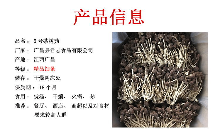 君志 江西广昌5号茶树菇干货批发 散装不开伞精选细条 产地货源