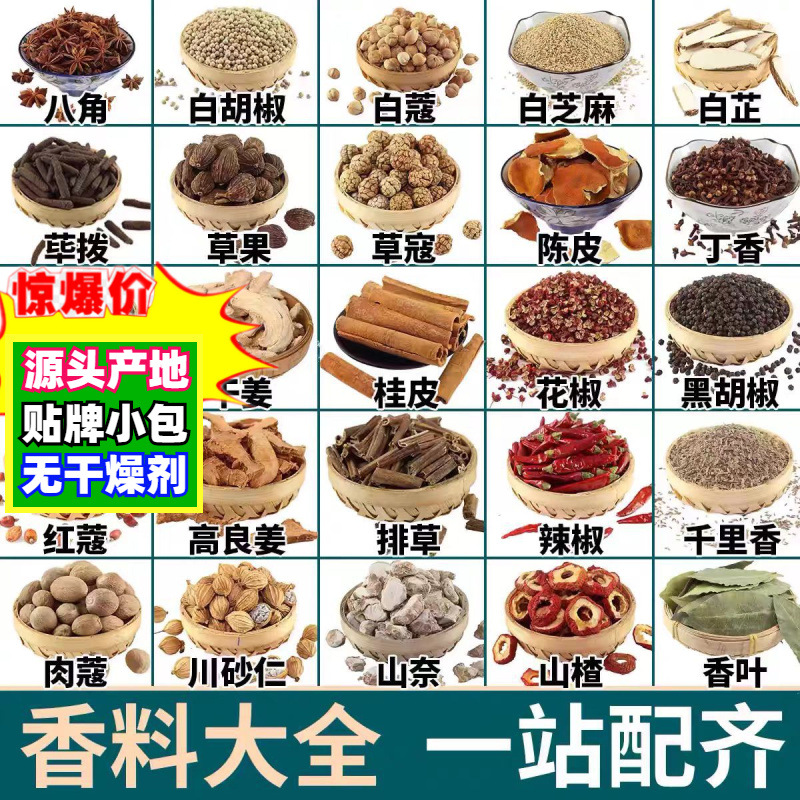 香料大全500g草果花椒八角桂皮香叶白蔻炖肉熟食卤料青麻黑白胡椒