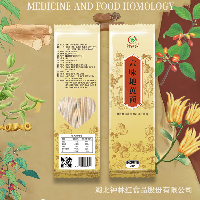 六味地黄面挂面黄精茯苓全麦面钟林红厂家直销古法药方药食同源