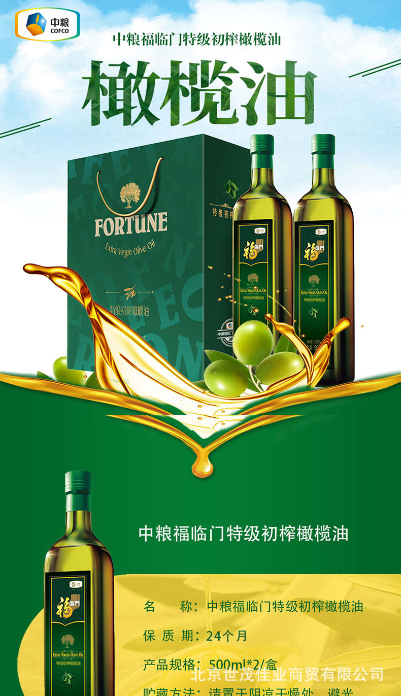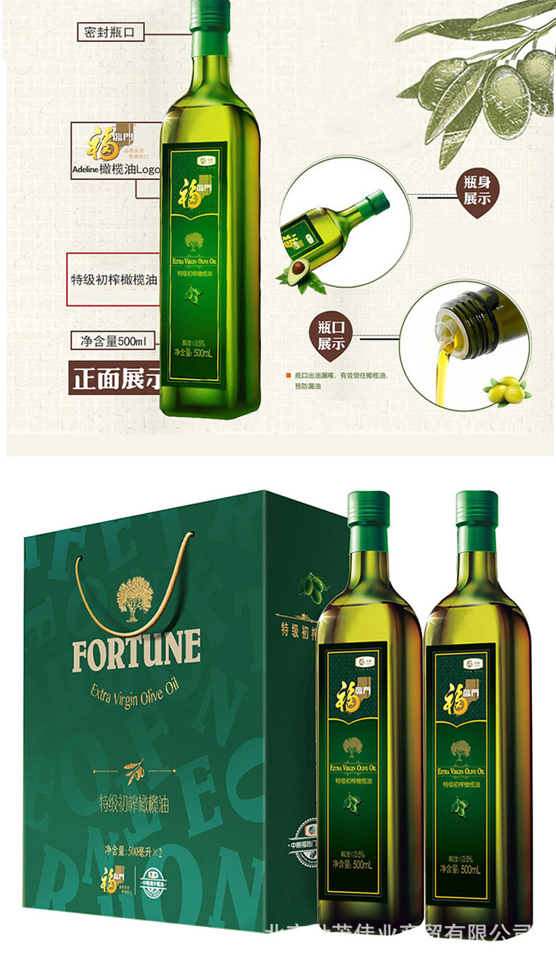 正品福临门特级初榨橄榄油礼盒500ml*2瓶食用油节日礼品团购批发