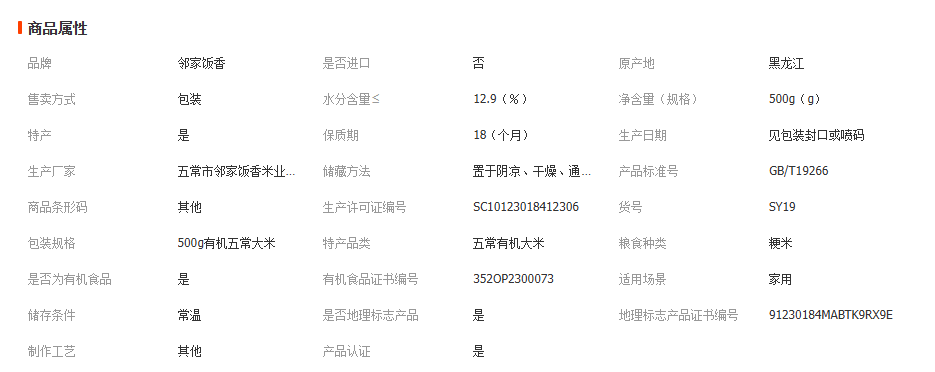 邻家饭香东北有机五常大米500g一袋真空稻花香米19266厂 家批发代