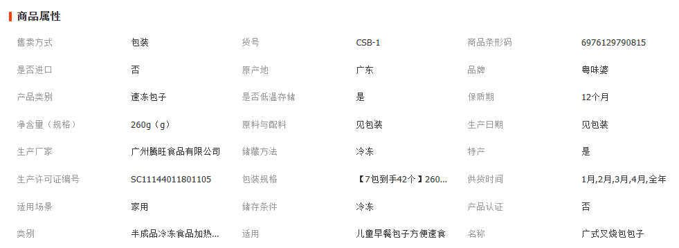 正宗广式蜜汁叉烧包儿童早餐半成品冷冻食品加热即食包子方便速食