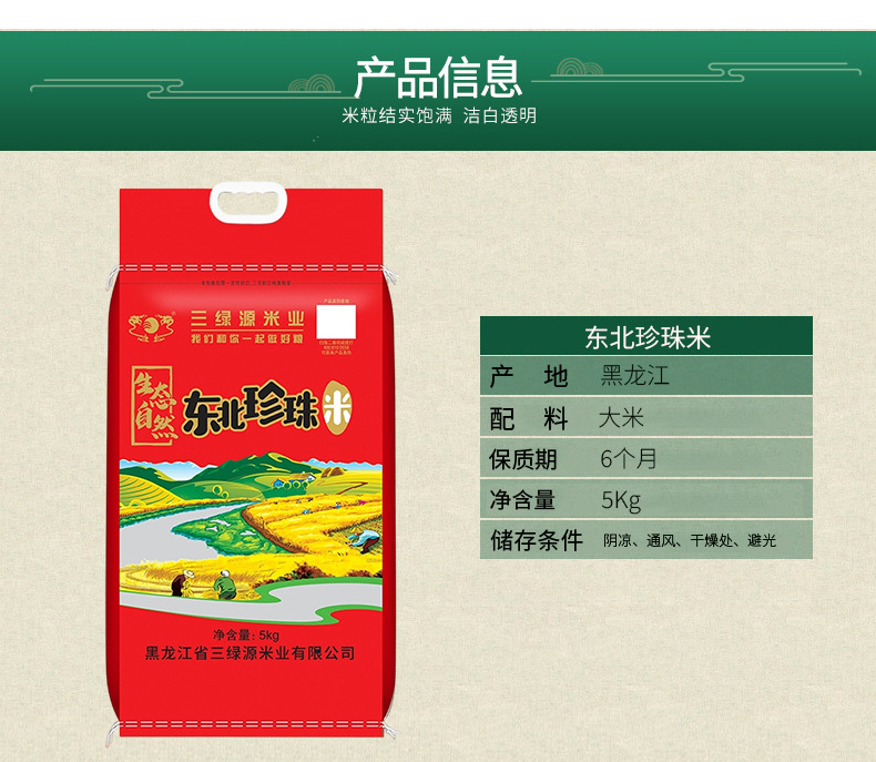 三绿源东北珍珠米10斤 东北特产2024大米5kg一件代发现货粮油产品