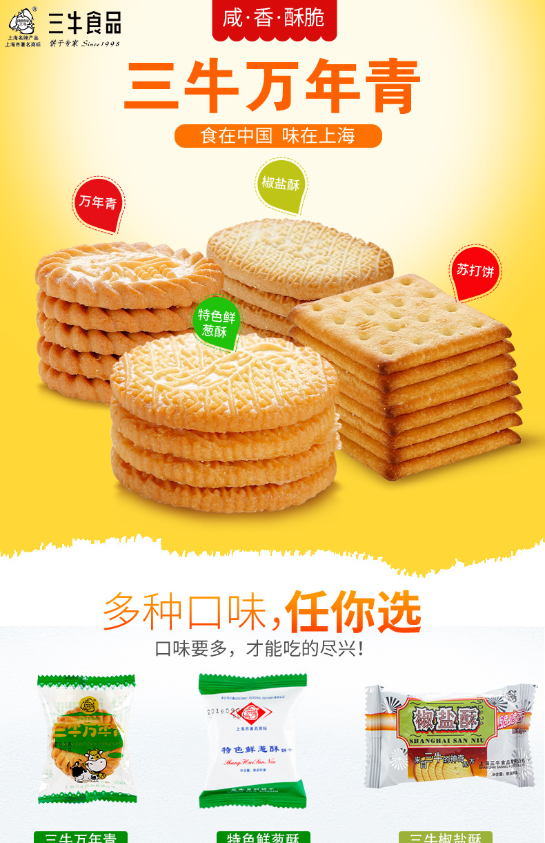 上海三牛苏打饼干椒盐味万年青椒盐酥老式怀旧零食小吃官方旗舰店