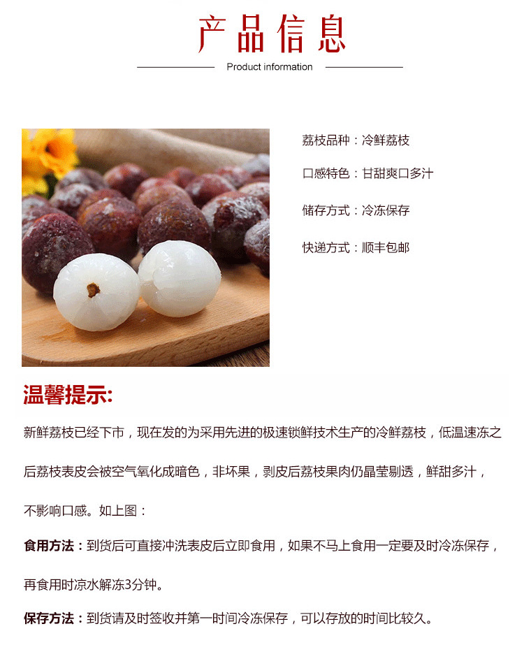 冷链包邮冷冻荔枝新鲜水果冰镇荔枝商用速冻荔枝奶茶店批发500g/