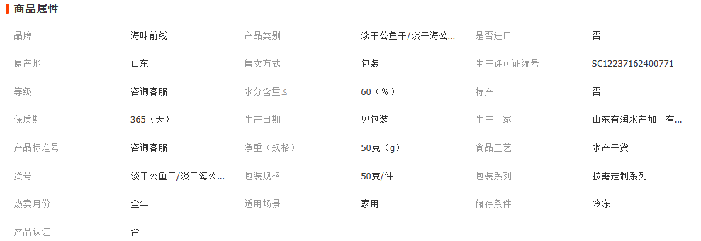主营: 水产干货类 鱼类零食 海藻类