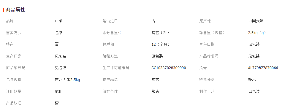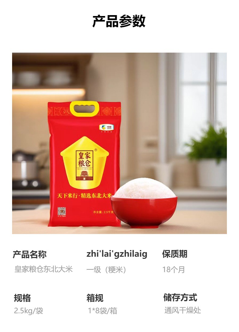 中粮皇家粮仓精选东北大米2.5kg一级粳米真空包 节日企业福利送礼