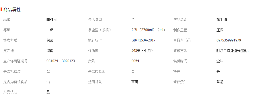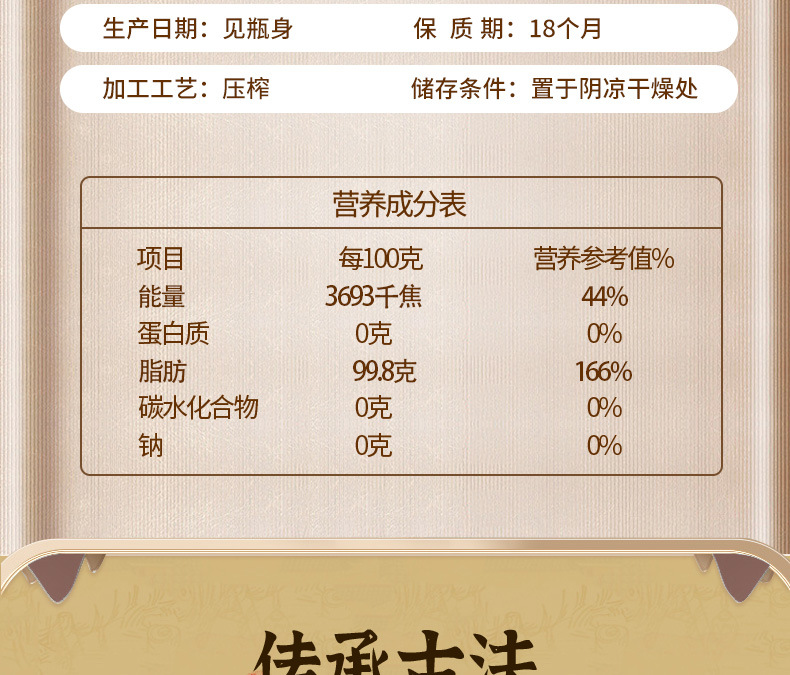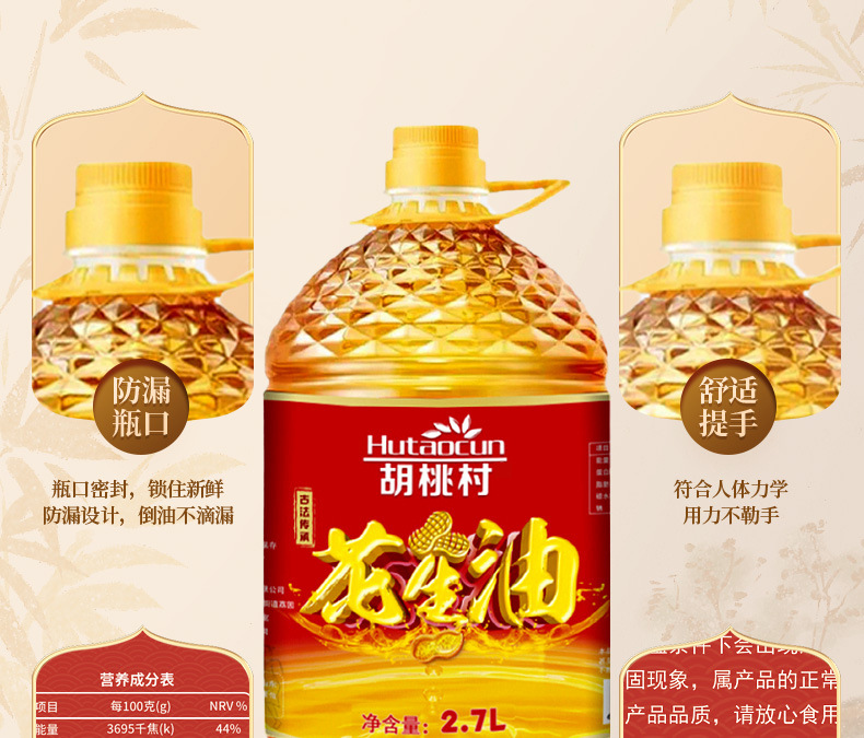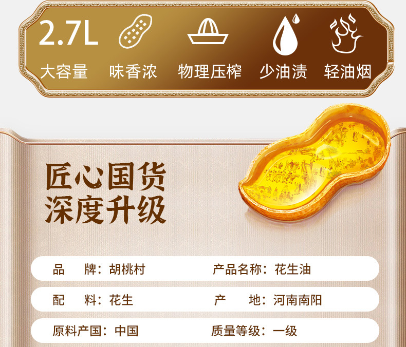 胡桃村花生油2.7L浓香古法花生油压榨食用油工厂直销批发