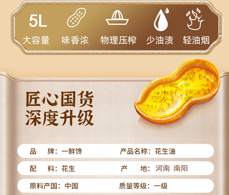 一鲜馋古法压榨花生油.特香食用油家用厂家直销