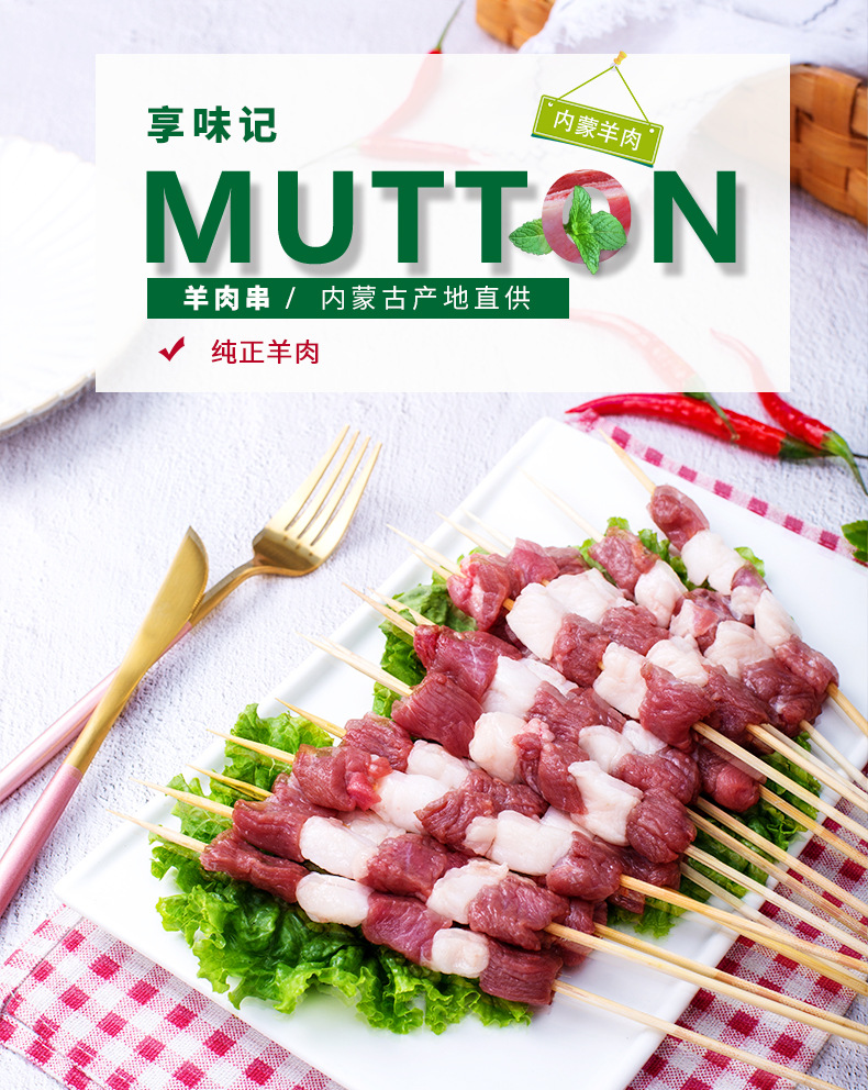 内蒙古羊肉串半成品纯羊肉新鲜羊肉每串净肉20克纯羊肉烧烤食材