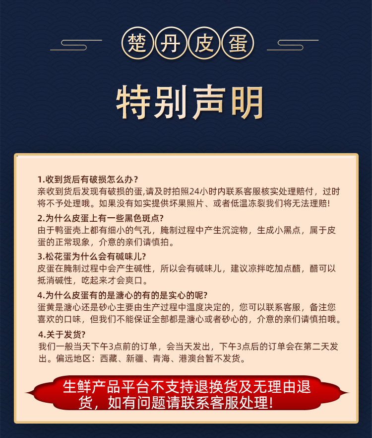 楚丹松花蛋精选70克*10/20枚无铅工艺嫩溏心皮蛋腌制即食好吃凉拌