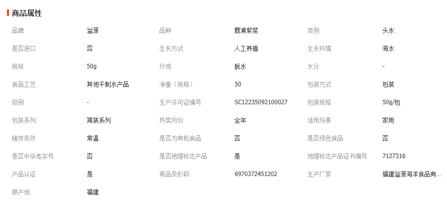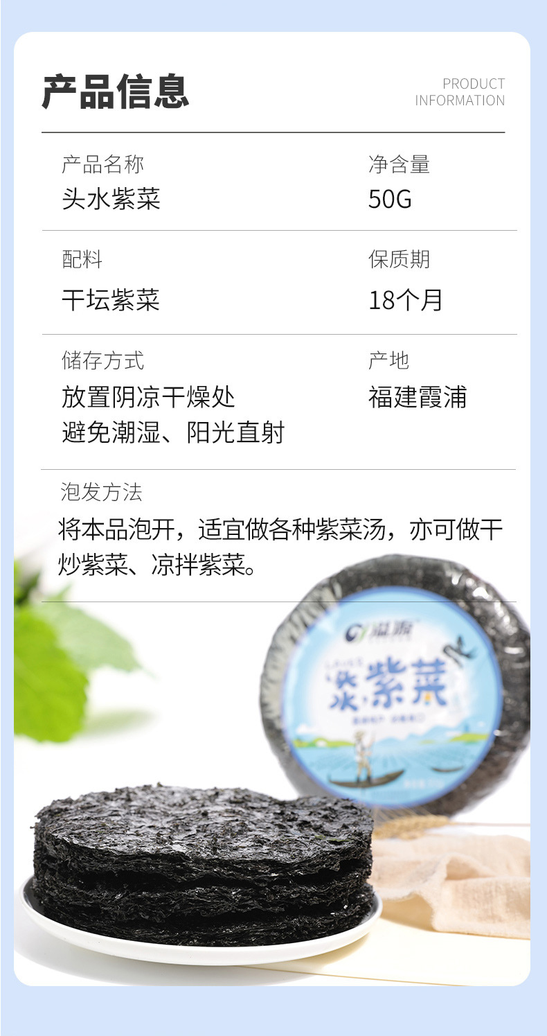溢源霞浦头水紫菜干货干净免洗蛋花汤紫菜拌饭凉拌食材50g非即食