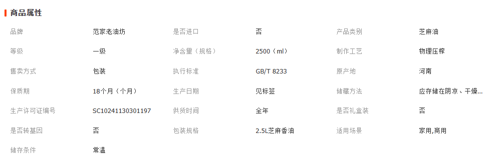 凉拌菜火锅家用瓶装调味油过年送礼范家老油坊2500ml纯芝麻香油