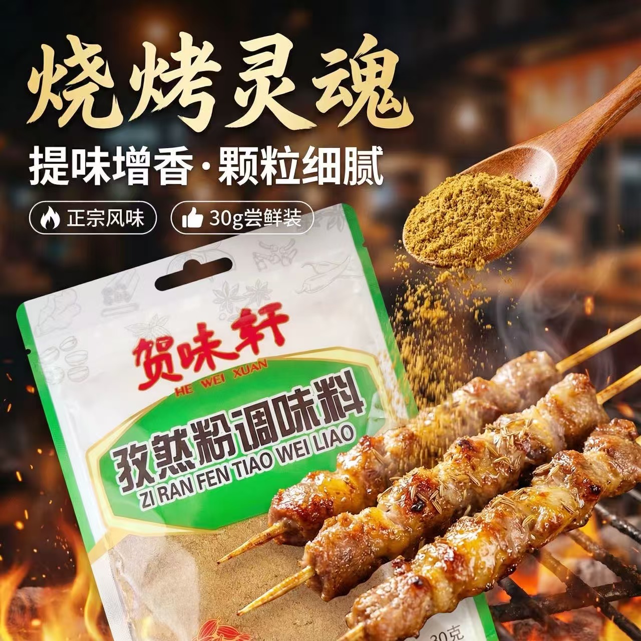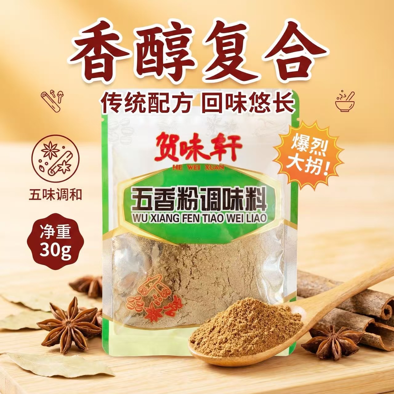 【贺味轩】五香粉花椒粉孜然粉白袋30克商超同款炒菜调馅调味料