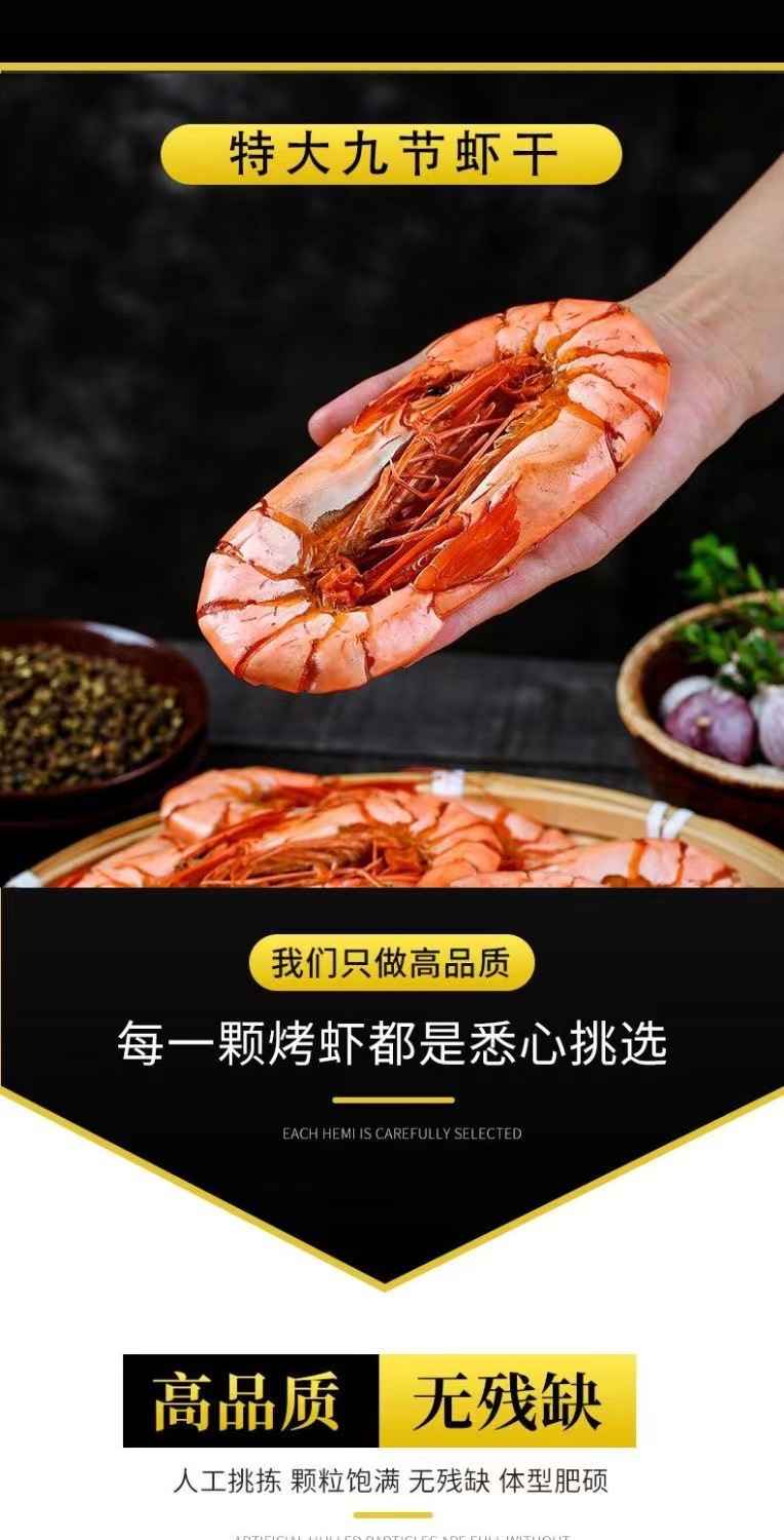九节虾开袋即食 孕妇零食海鲜干货 山东特产烤虾干大号竹节虾海虾