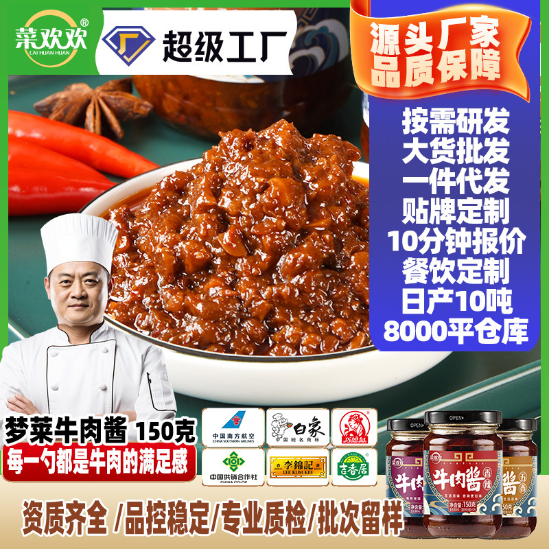 菜欢欢牛肉酱香辣红烧五香拌面餐饮大包装下饭酱火锅蘸料瓶装代发