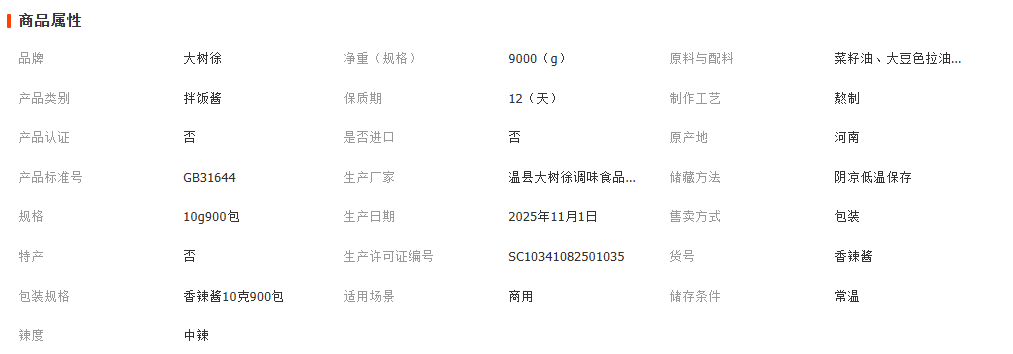 大树徐外卖香辣酱小包香菇拌饭酱拌面下饭酱辣椒酱调味包10g900包