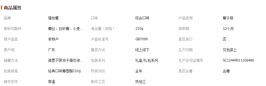 禧怡馨原味椰蓉酥210g广式传统糕点年货下午茶椰子味点心团购批发