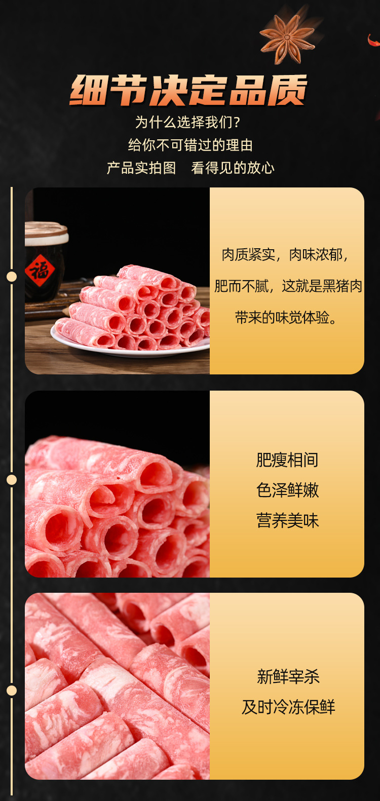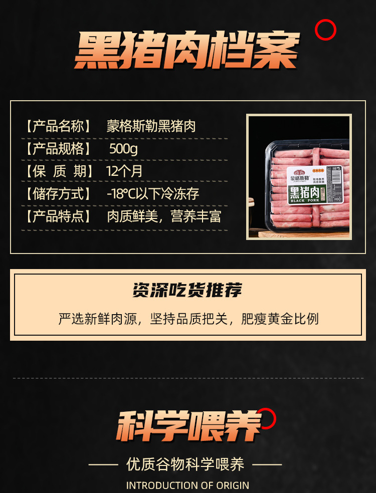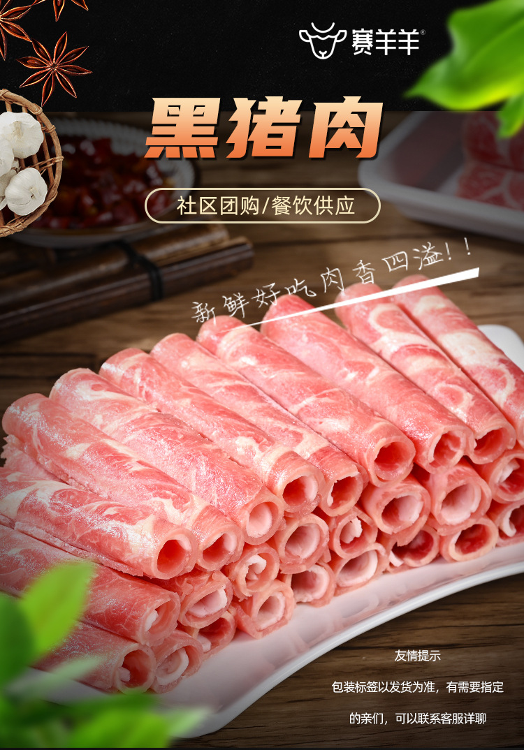 厂家批发黑猪肉卷家用商用黑猪肉片源头工厂蒙格斯勒黑猪肉卷