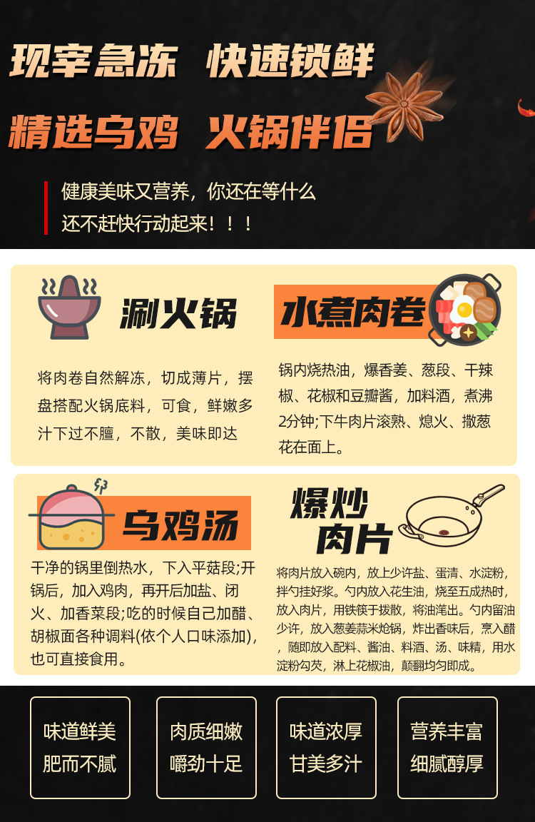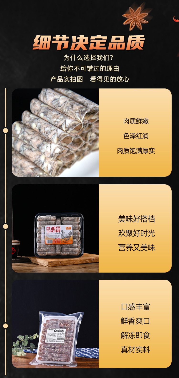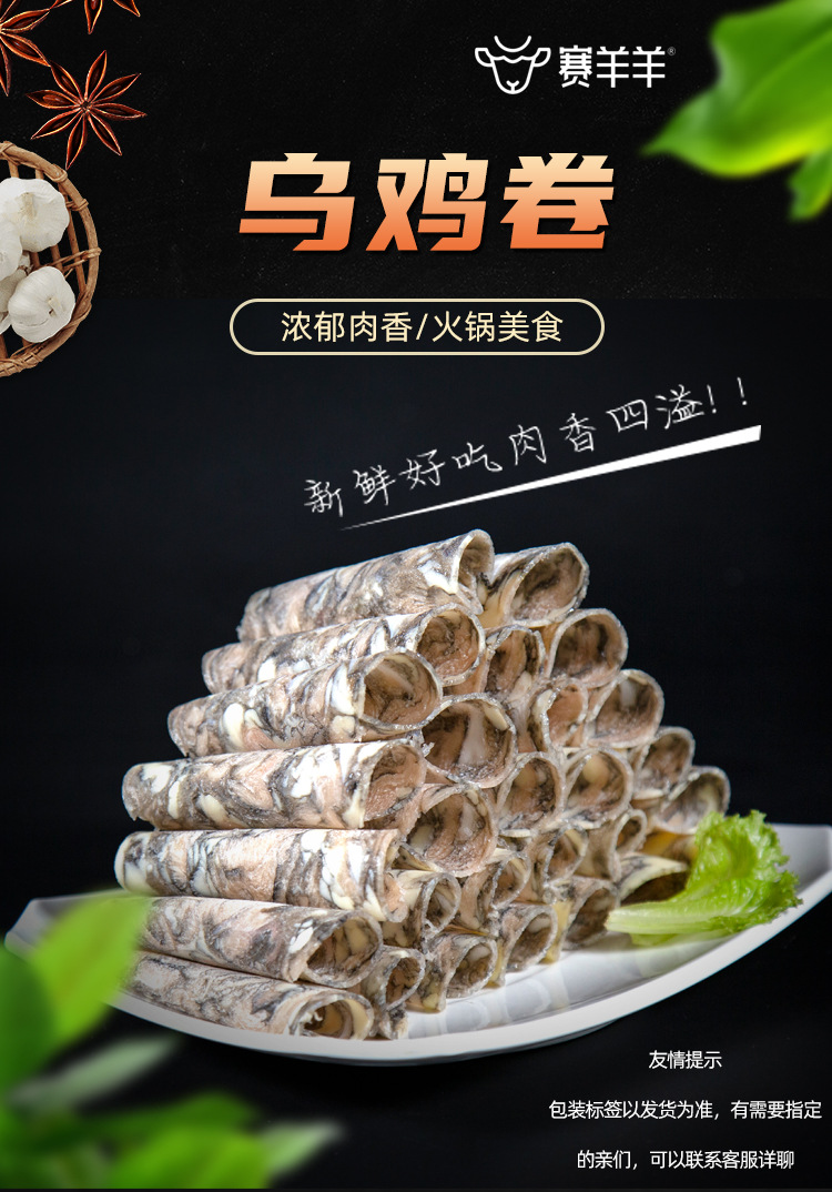 现货火锅配菜餐饮超市批发乌鸡卷乌鸡肉片家用商用蒙格斯勒乌鸡卷