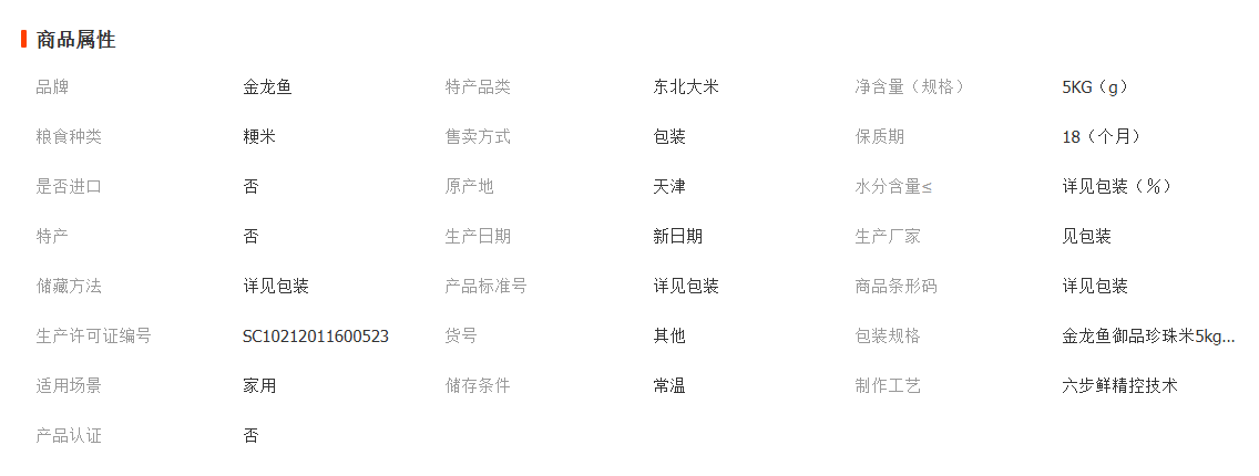 金龙鱼御品东北珍珠大米5kg员工福利团购积分兑换礼赠家用