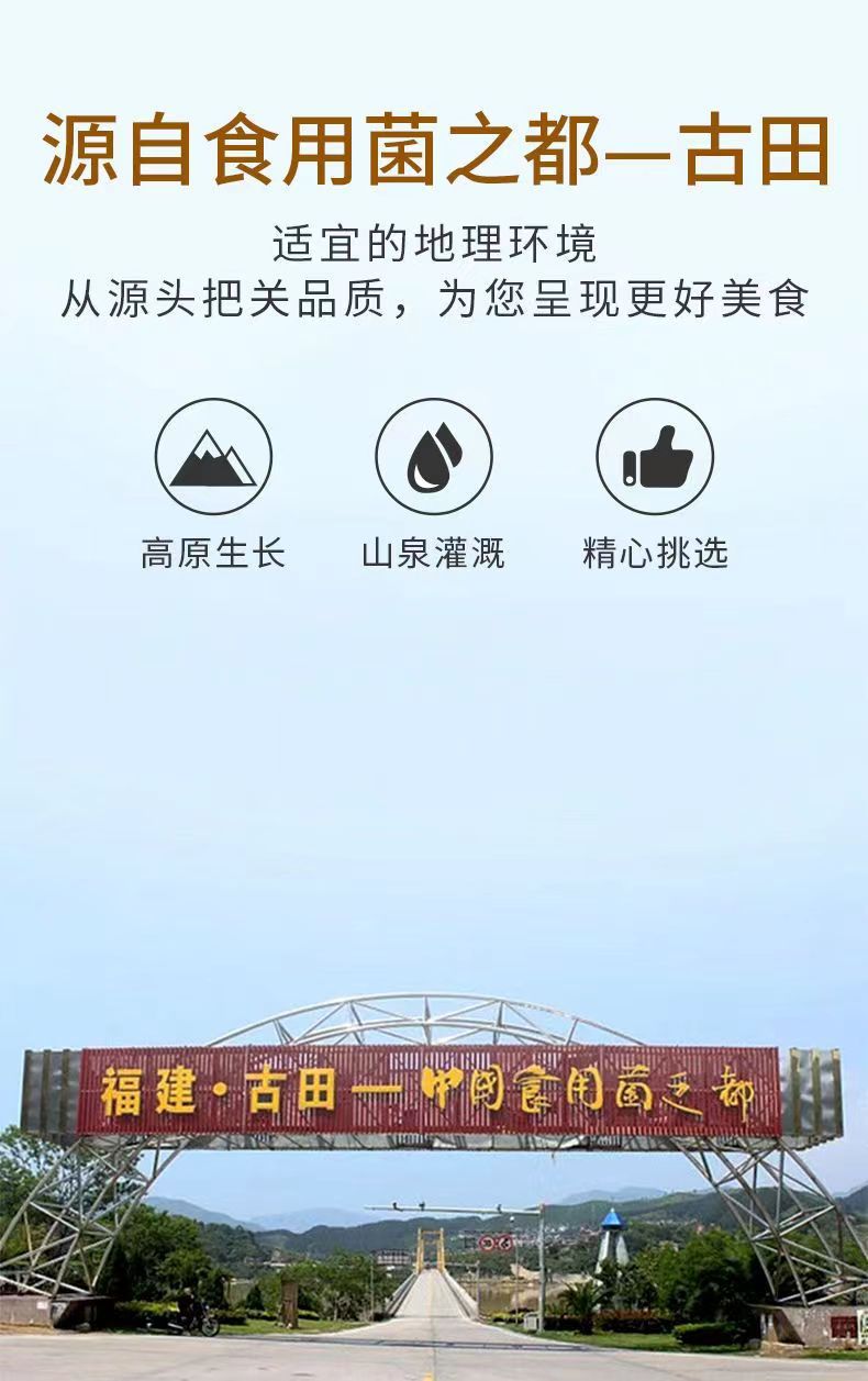 专业生产经营古田农产品干货,目前与古田各大食用菌种植基地进行了深度合作,拥有优质,稳定的源头货源;实力厂家供应链,地址在宁德古田食用菌基地,产值上亿,我们拥有电商13年经验,我们具备独立的设计部、生产部、质检及专业售后团队等多个专业部门!