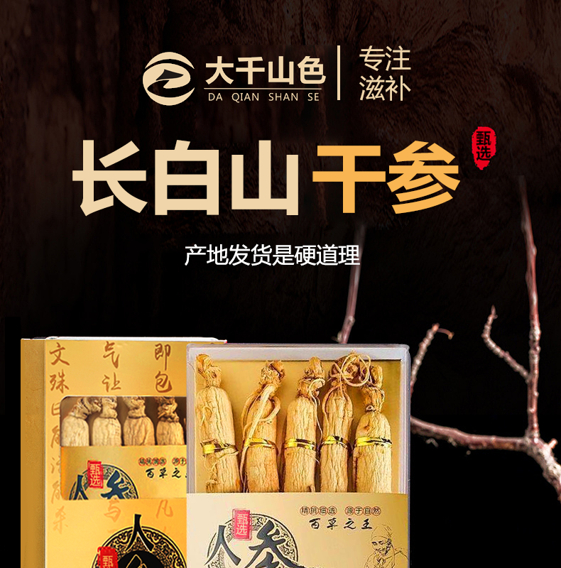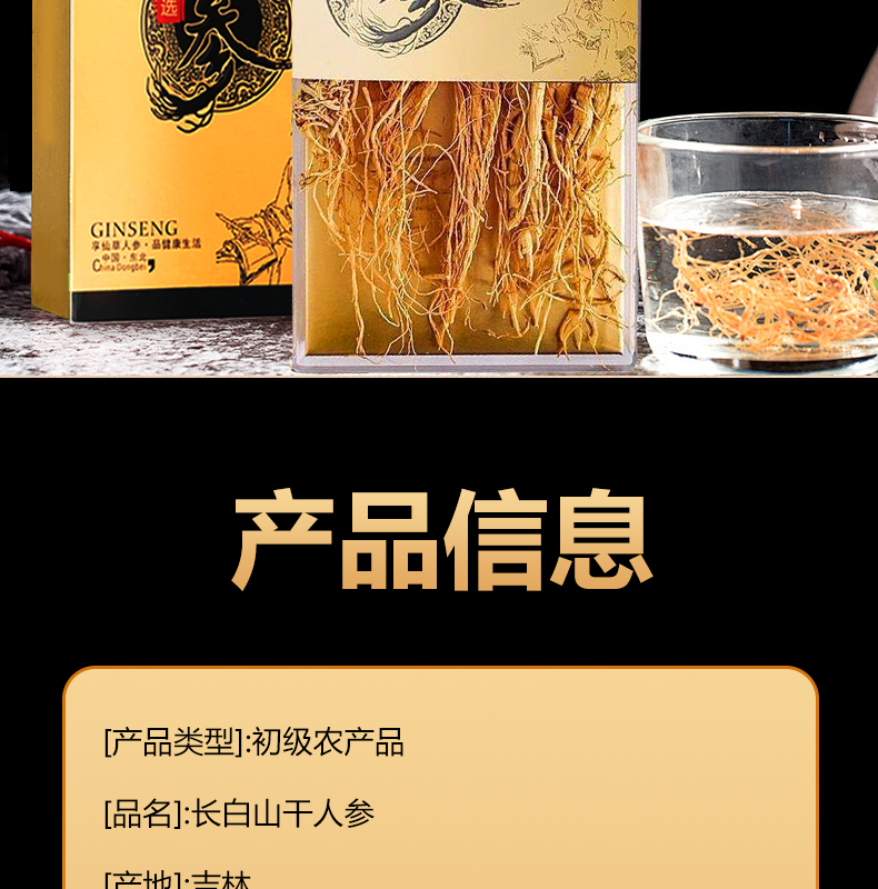 长白山特产干人参煲汤泡酒用白参正宗吉林人参滋养生晒参礼盒