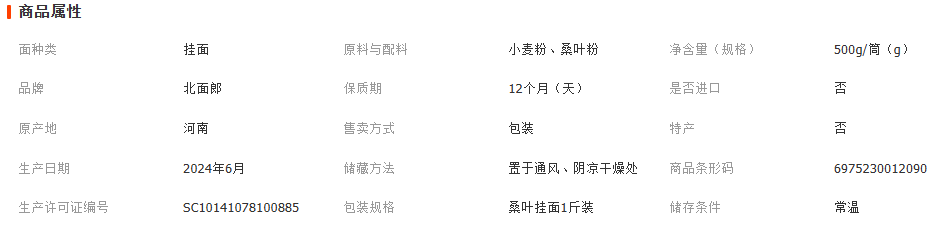 北面郎桑叶挂面 500g/筒老少皆宜营养均衡早餐代餐挂面现货批发