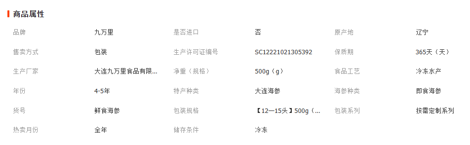 工厂直营批发大连鲜食海参辽刺参一手货源海参劲道口感500g