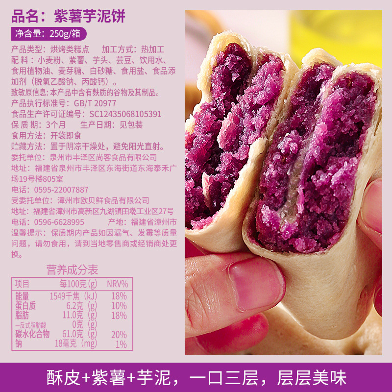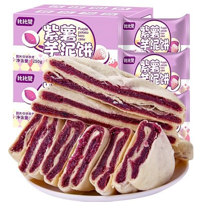 比比赞紫薯芋泥饼250g/箱面包整箱低0早餐网红小零食排行榜批发