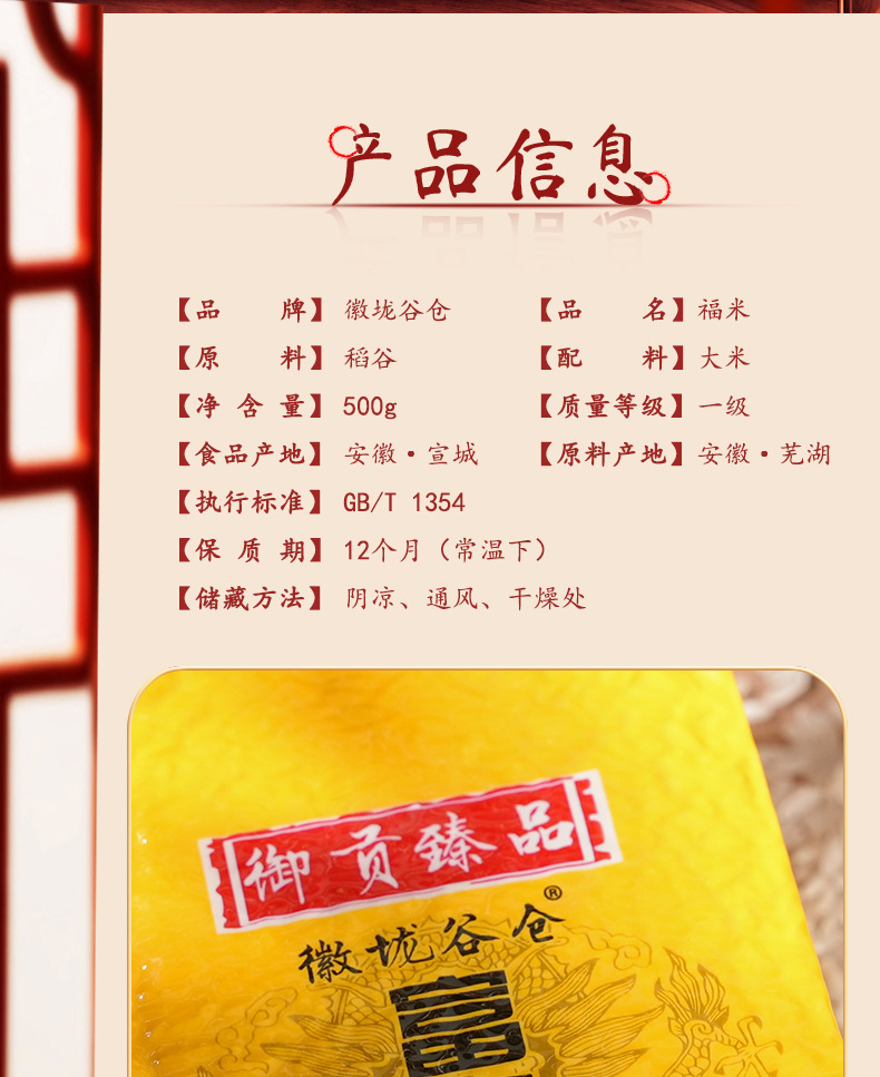 徽垅谷仓 富贵香米500g1斤大米真空小包装房产会销装礼盒活动礼品