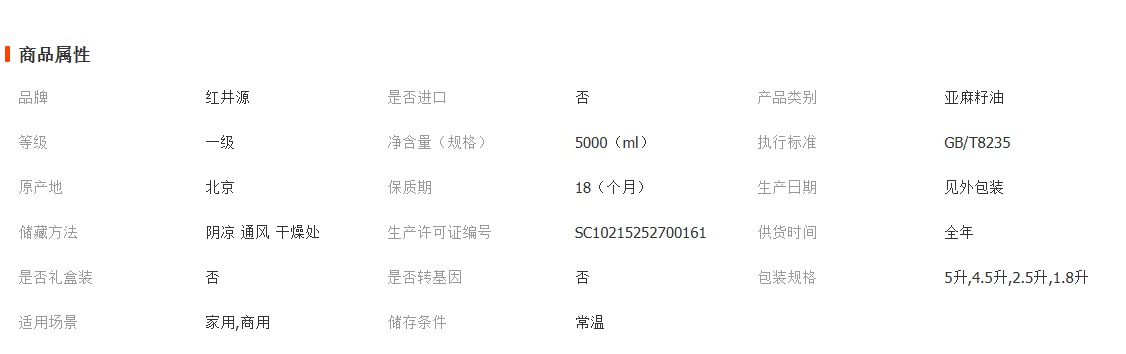 内蒙古红井源亚麻籽油5L/4.5L/2.5L/1.8L压榨一级食用油月子油