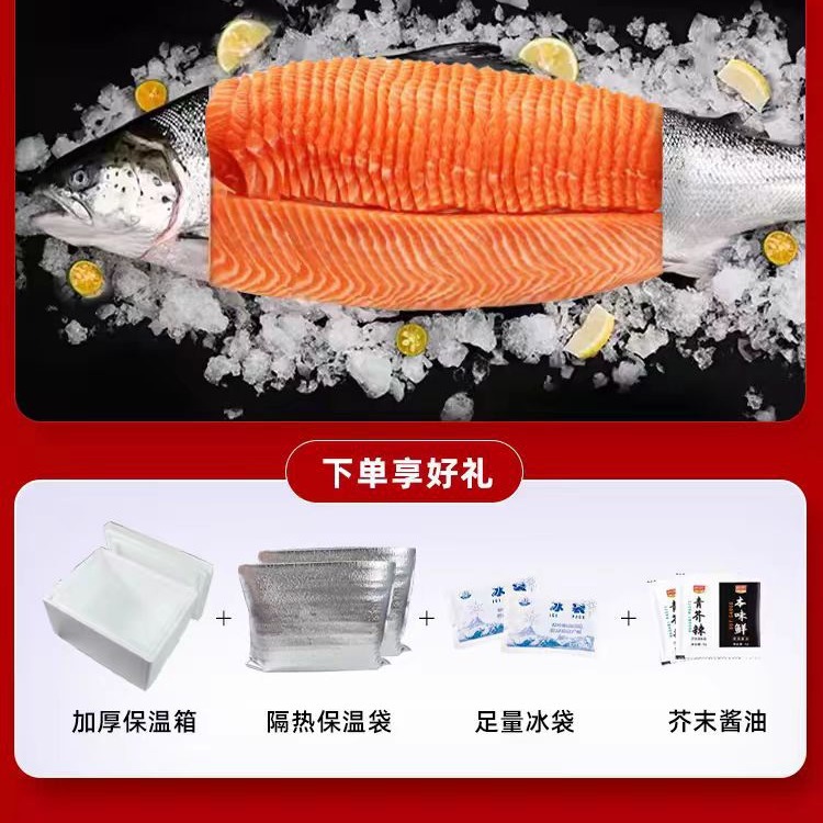 冰鲜刺身三文鱼中段挪威鲜切生鱼片整条新疆三文鱼腩鲑鱼虹鳟鱼
