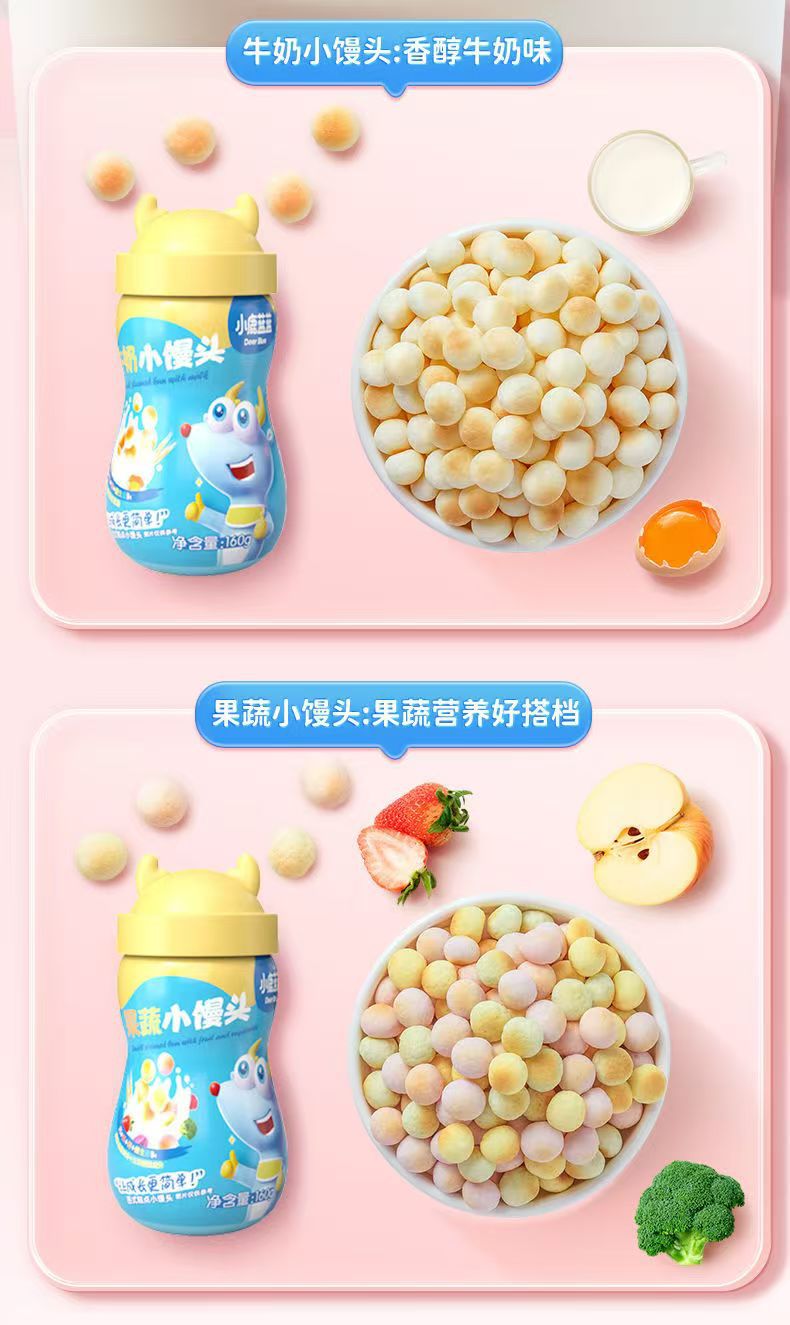 小鹿蓝蓝果蔬牛奶小馒头85g罐装零食奶香浓郁奶豆小馒头饼干