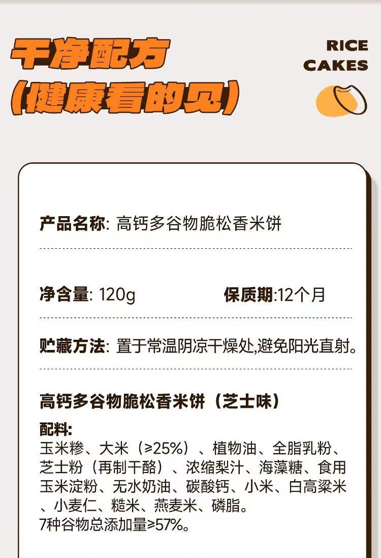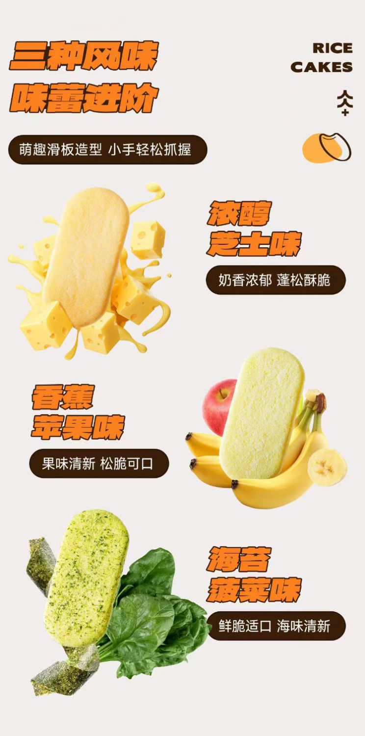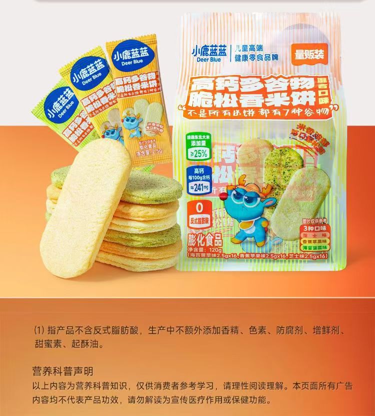 小鹿蓝蓝脆松香米饼120g/48片高钙多谷物芝士味海苔香蕉混合米饼