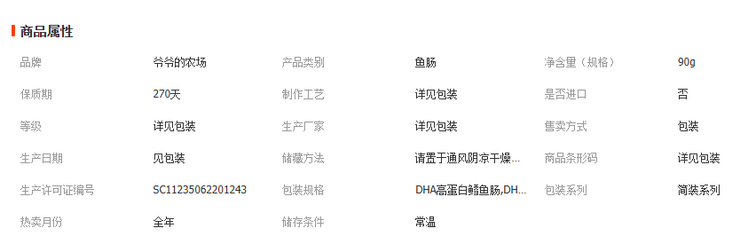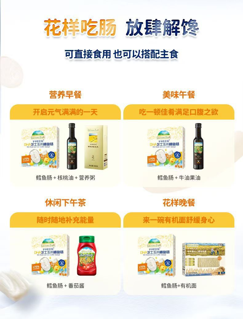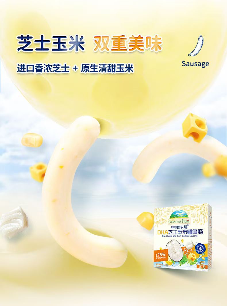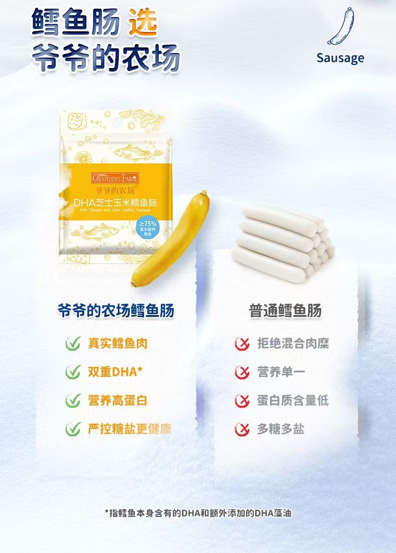 爷爷的农场DHA深海鳕鱼肠(90g/10克*9)即食火腿肠儿童零食小吃